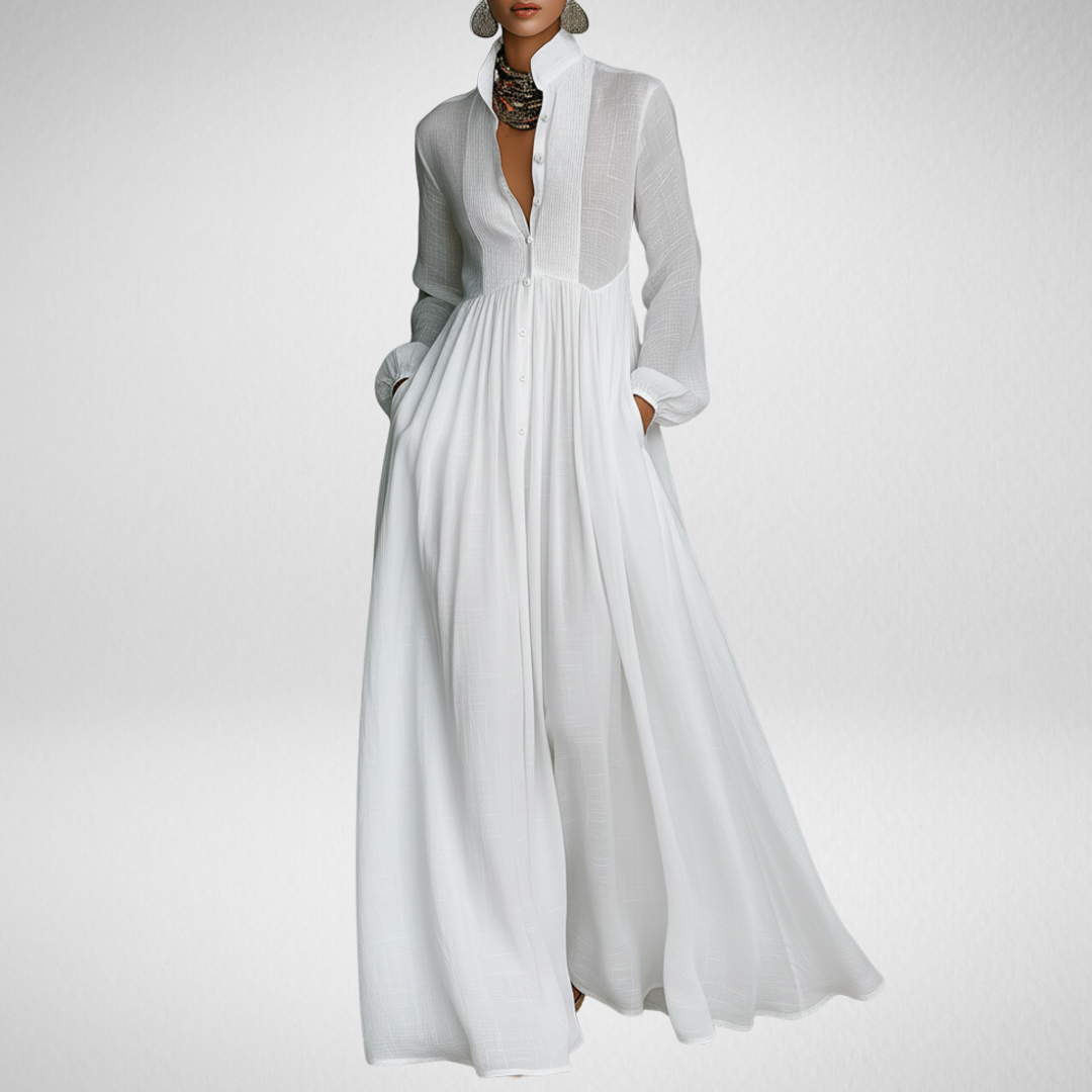 Tyto maxi šaty jsou stvořené pro ženy, které dávají přednost jednoduchosti, volnosti a nadčasovému stylu. Jemná silueta, dlouhá linie a čisté detaily vytvářejí pocit lehkosti, který vás provází po celý den.