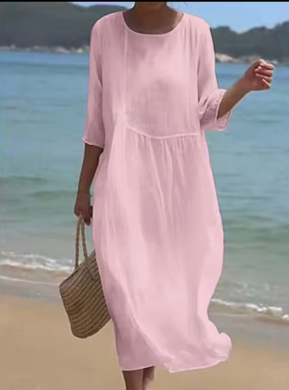 • Flattering Silhouette – Knee-length cut and round neckline create a timeless, elegant shape.